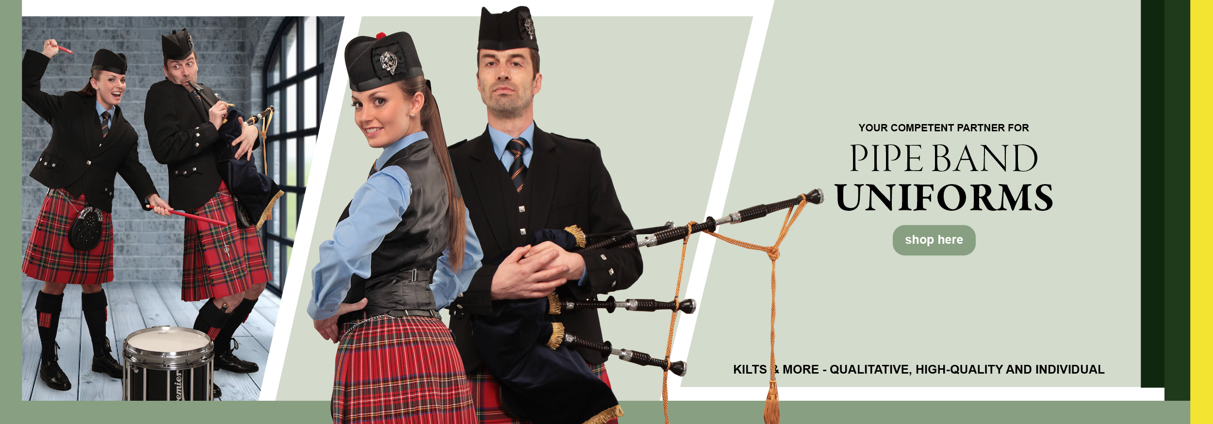 We offer a comprehensive range of traditional highland wear and pipe band supplies. Donald McPhee and his team offer years of experience in tailor-made outfits for quality conscious individuals and cater for the growing demands of the modern-day pipe band. We are the shop choice for thousands of customers worldwide who are looking for our commitment, quality and customer service. Our reputation is based on competence, reliability and honesty. You will be pleased to know that most of the products you find in our online shop are in stock, enabling us to provide fast and efficient delivery. We hope you enjoy shopping with us.