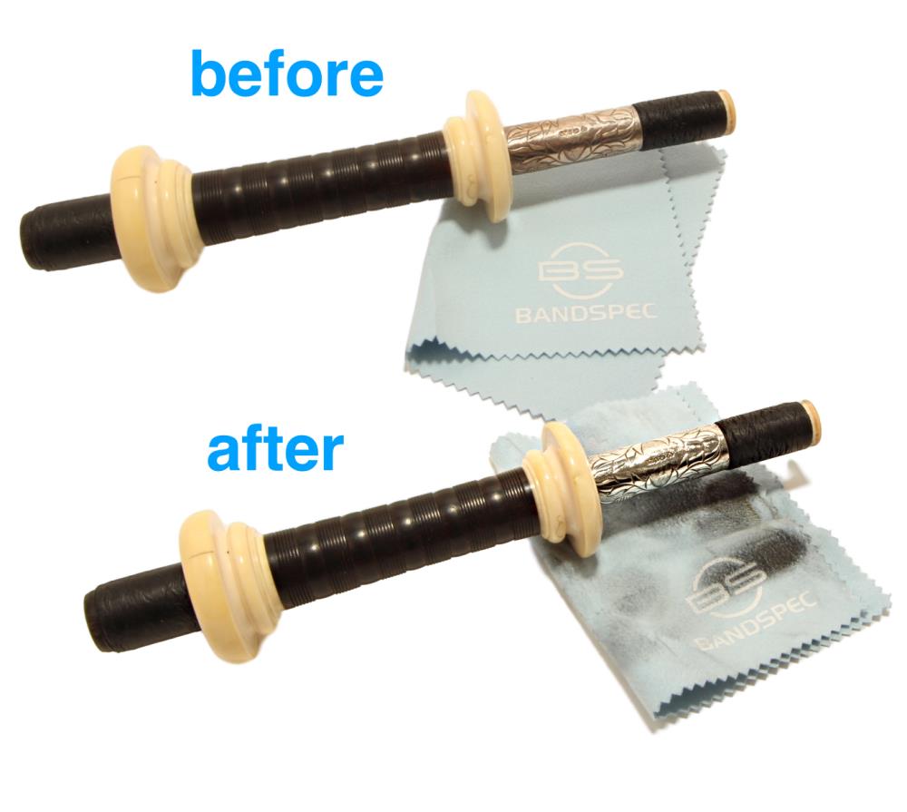 It works on all types of bagpipe metals, including aluminium, nickel, silver nickel and sterling silver.