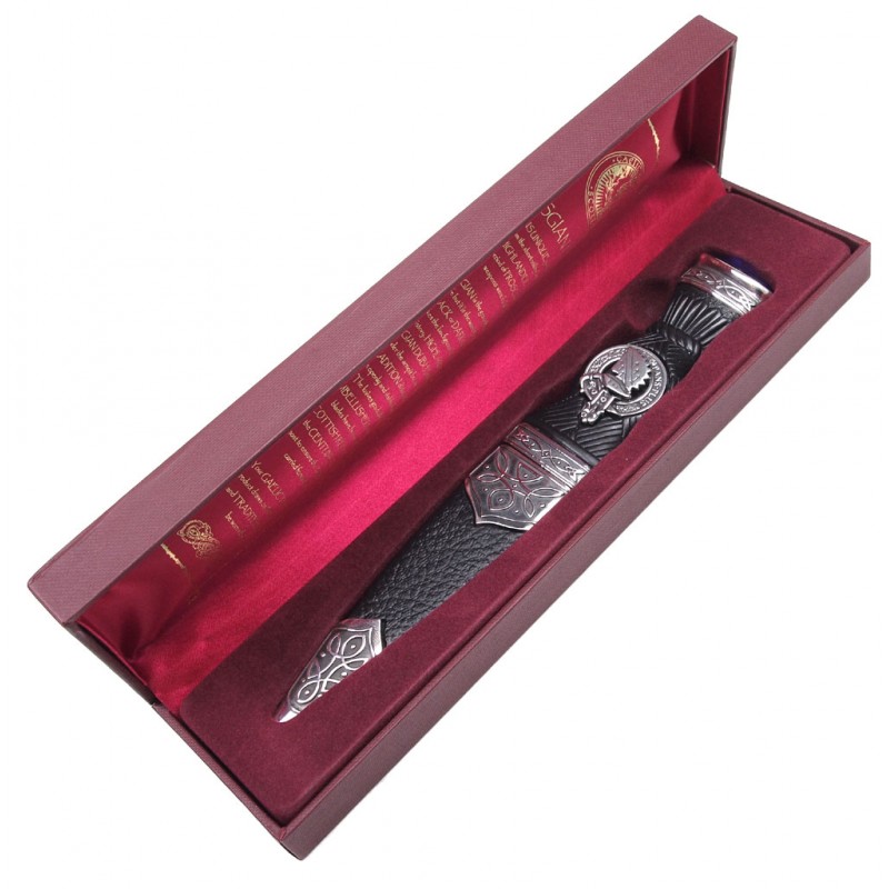 Derived from the Gaelic term for "black knife," the Sgian Dubh is a small, single-edged knife that has been a part of Highland dress for centuries, traditionally worn along with the kilt. Our Sgian Dubh is made to the highest standard, with every detail crafted with care.
