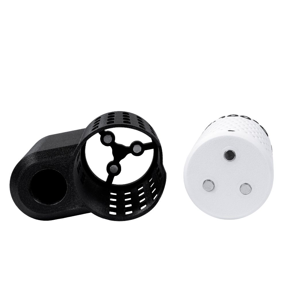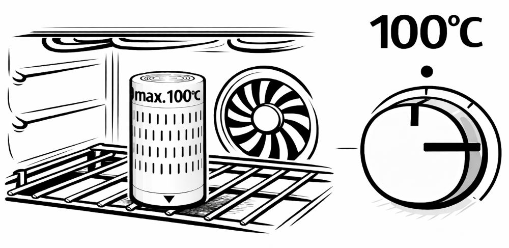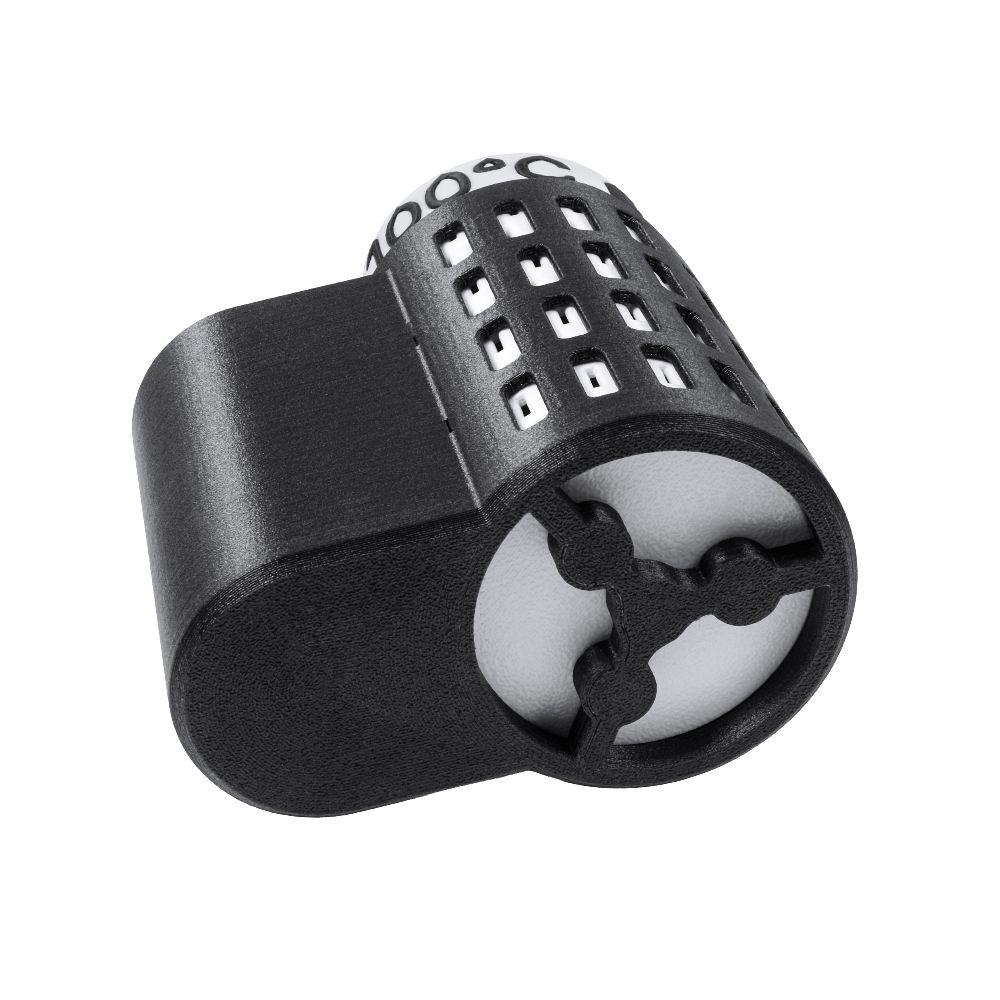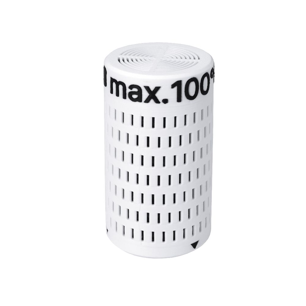 Gefertigt aus High Temperature PLA (Polylactid) mit hitzebeständigen Magneten. Du kannst den kompletten Kanister direkt bei 80 bis 100°C in den Ofen legen. Kein Entleeren des Silikagels erforderlich.