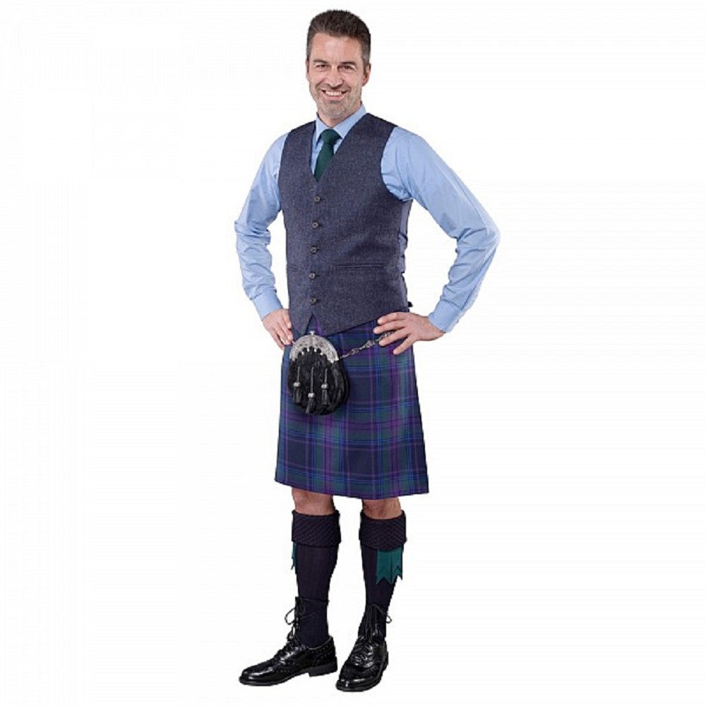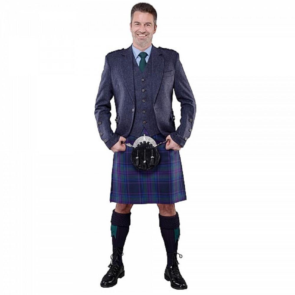 Die Lomond Blue Tweed-Jacke wird als Set mit Weste geliefert.Preis für Jacke und Weste (ohne Kilt und Accessoires).