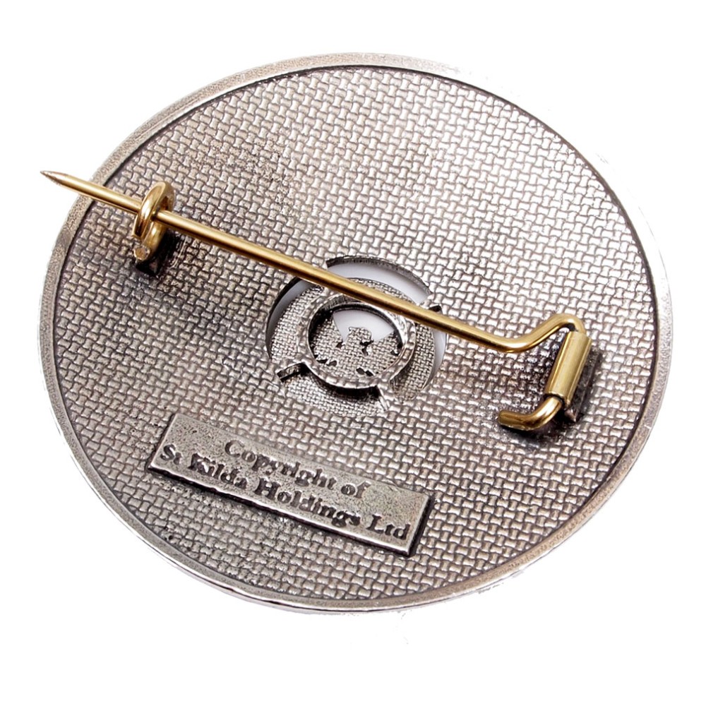 Plaid-Broschen werden an der Schulter des Plaids befestigt und dienen als Gewichte, um es an Ort und Stelle zu halten (sie sollten nicht zusätzlich an der Jacke befestigt werden, damit sich das Plaid nicht irgendwo verfängt). Diese Brosche hat auf der Rückseite eine große Messingnadel, die für jede Befestigungsanforderung geeignet ist.