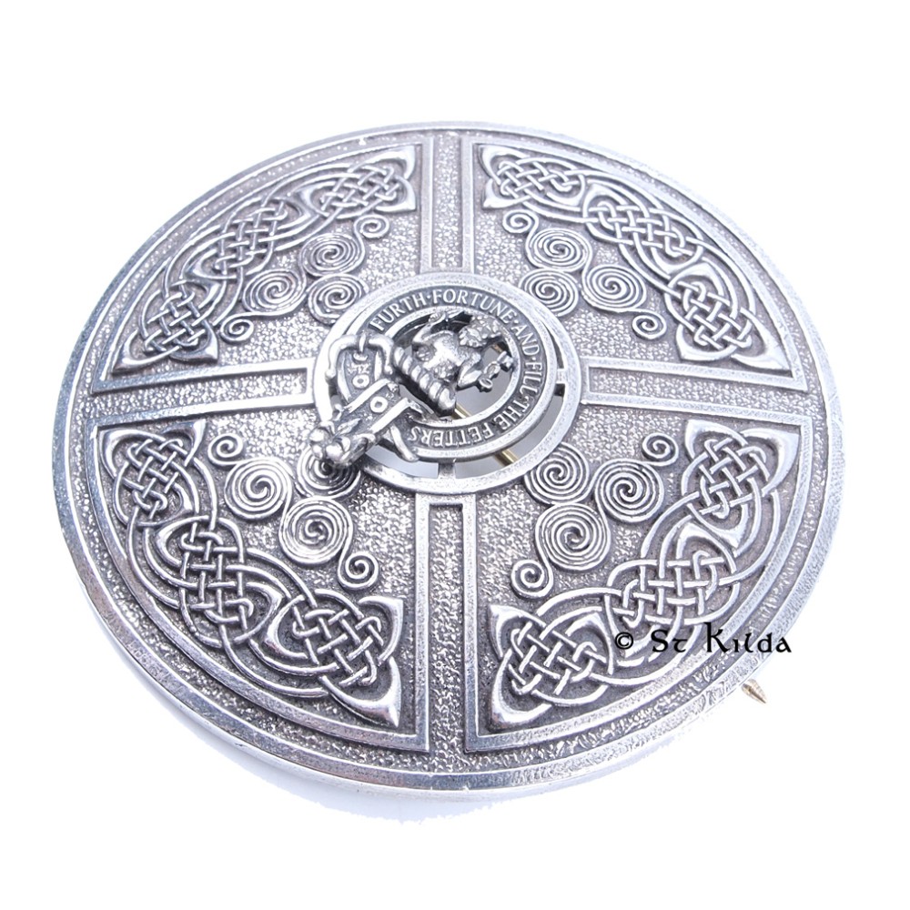 Große Fly-Plaid-Brosche mit Clan-Wappen.