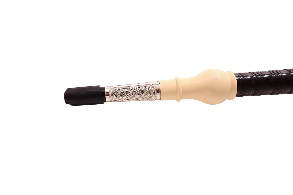 - Chanter en blackwood avec semelle et bague (bowl) en argent sterling entièrement gravées à la main