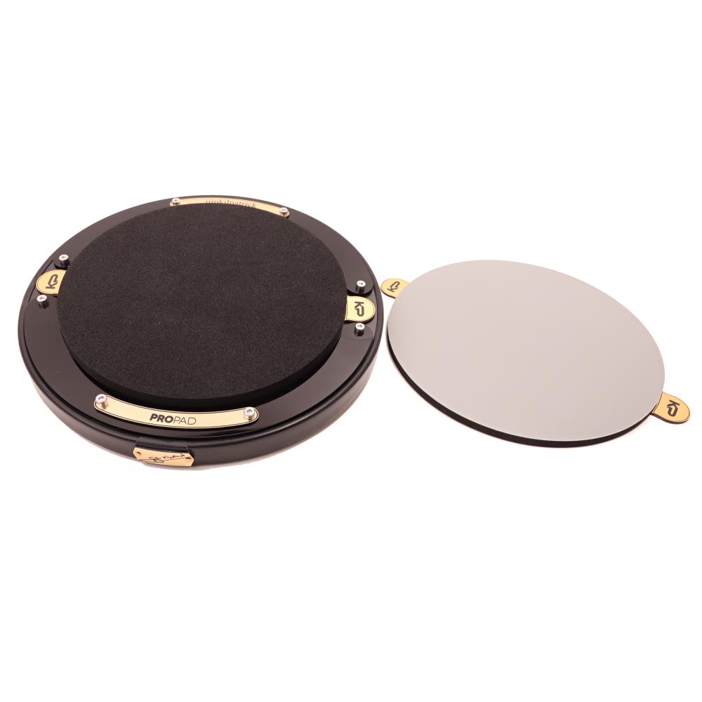 The Jim Kilpatrick ProPad features a base unit with a built-in magnet element and two separate pads. The first pad is white mylar which is ideal for both solo use and for drum corp practice as it enables you to hear all the detail with a wide dynamic range. The second pad is a grey silent foam pad which is quieter but still allows you to hear the detail and is ideal for restricted areas and confined spaces where you may not want to be playing on a louder surface.
