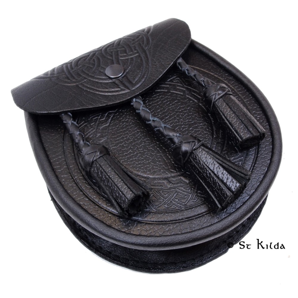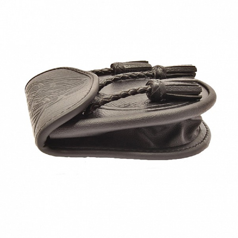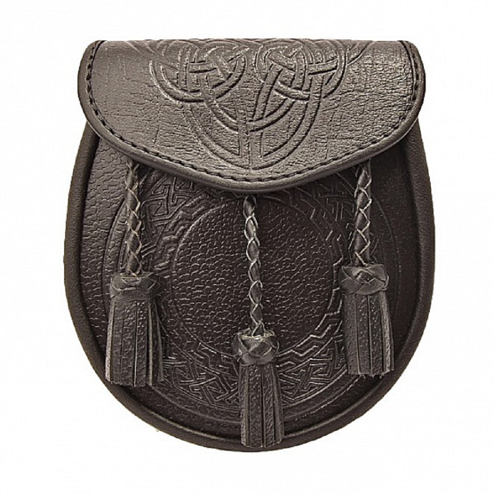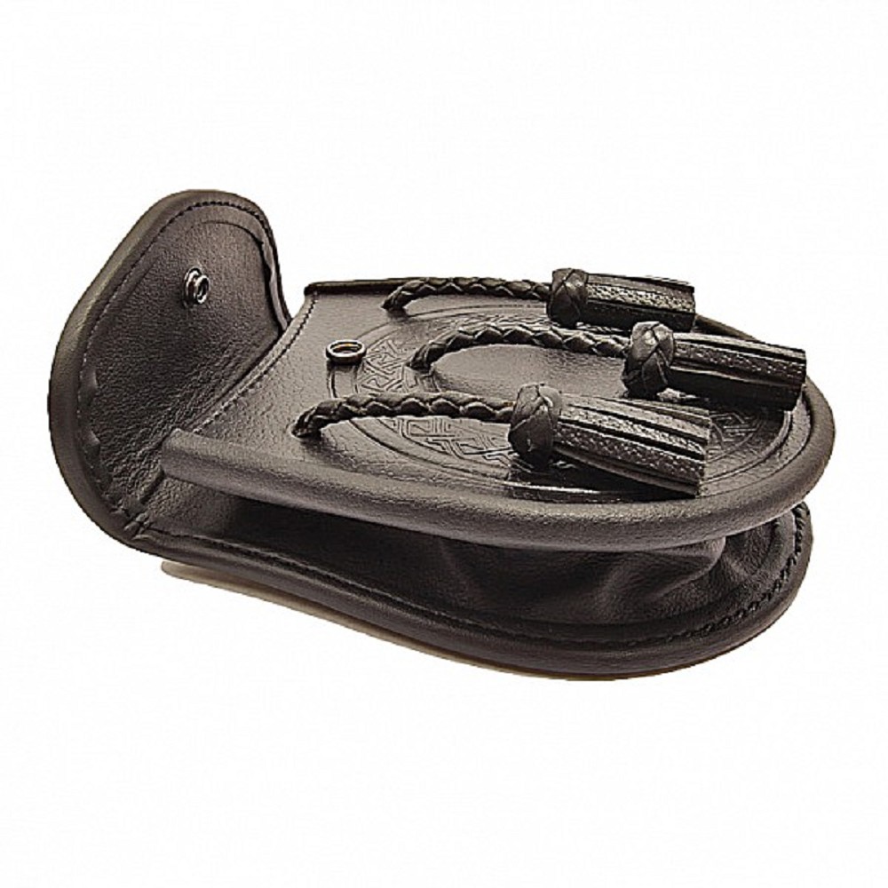 This beautifully crafted sporran with celtic design is made with 100% real leather! With spacious internal pocket and easy snap button closure this is a great choice for your kilt!