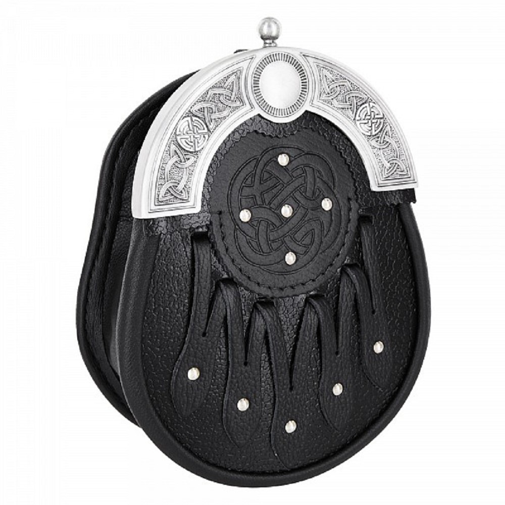 100% real leather sporran with a beautiful celtic design and internal chrome studs! This sporran is the perfect accessory for your kilt!