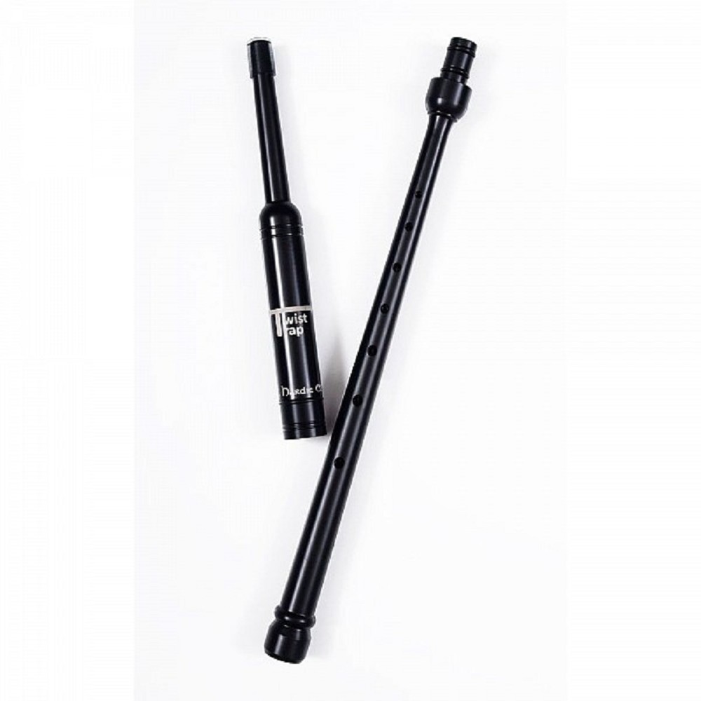 Introducing the Twist-Trap Practice Pipes, made by the renowned R.G. Hardie Bagpipes of Glasgow. These mouth-blown smallpipes feature a long practice chanter and two drones. Producing a softer, more mellow tone compared to the Highland Bagpipes, they are pitched to the key of A (440Hz), making them perfect for solo practice or group play alongside other instruments.